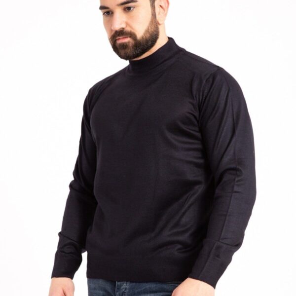 Erkek Lacivert Ince Yün Triko Baba Yarım Balıkçı Boğazlı Kazak