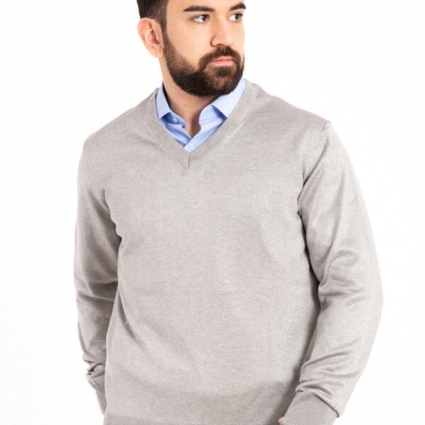 Erkek Gri İnce Yün Triko V Yaka Triko Kazak