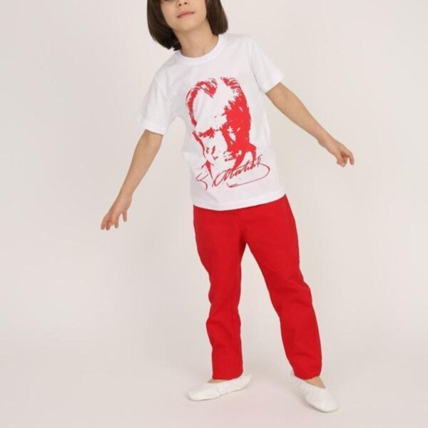 Erkek Çocuk 23 Nisan 29 Ekim Atatürk Baskılı T-shirt Pantolon Takım Gösteri Kıyafeti